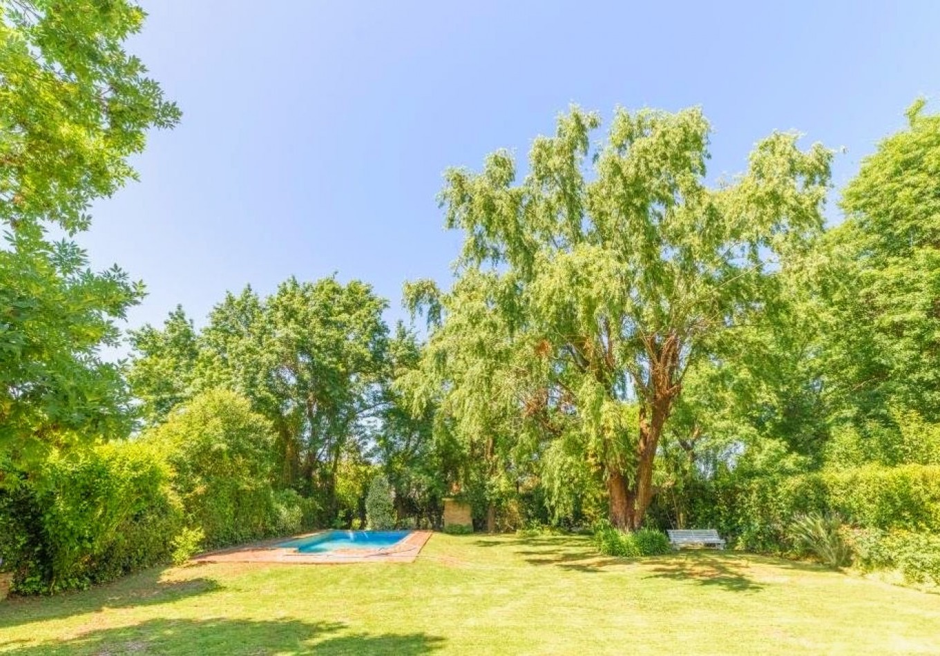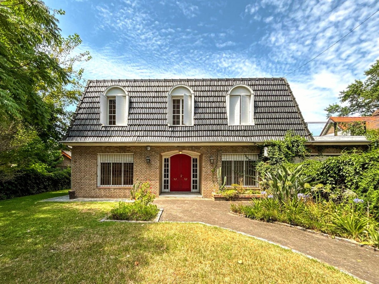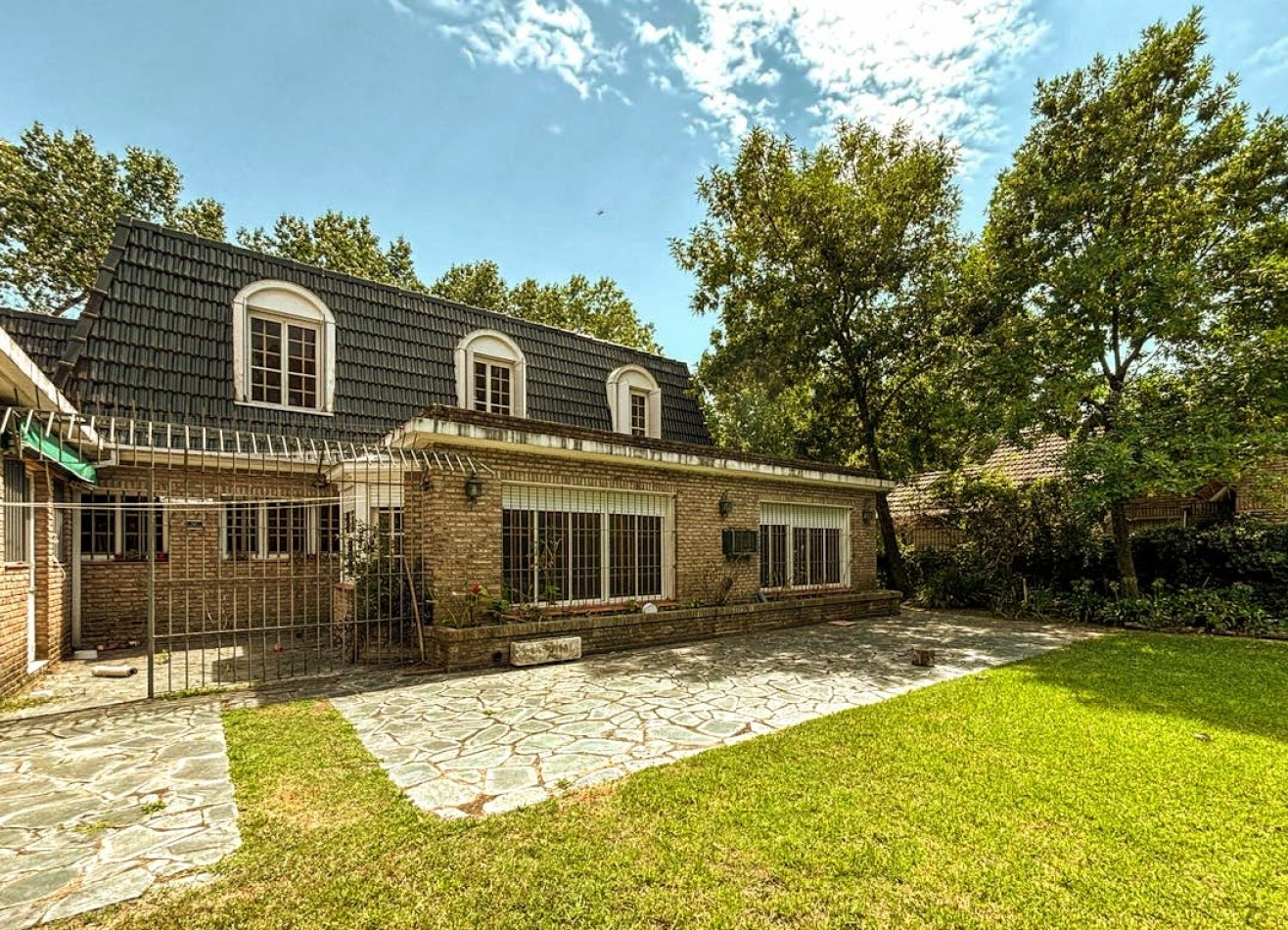 En planta baja, un importante hall de recepción da paso a un living y comedor independientes, ambos con detalles nobles y materiales de categoría. Se suma un comedor diario, cocina independiente, escritorio, family room o jardín de invierno con vistas abiertas al parque, baño de servicio y lavadero independiente. El sector exterior ofrece un gran jardín parquizado con piscina equipada, quincho con parrillero y cochera para tres vehículos con portón automatizado.