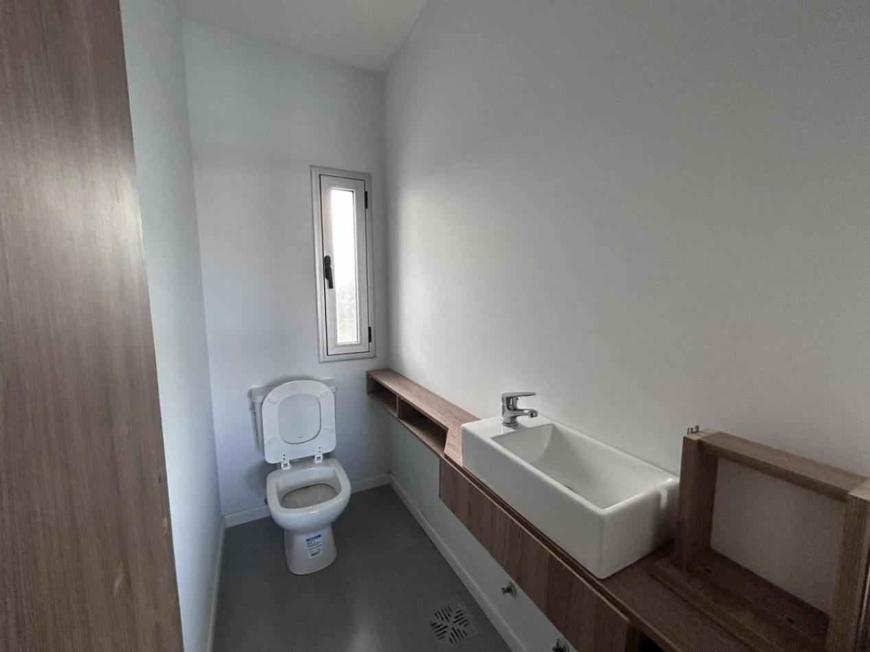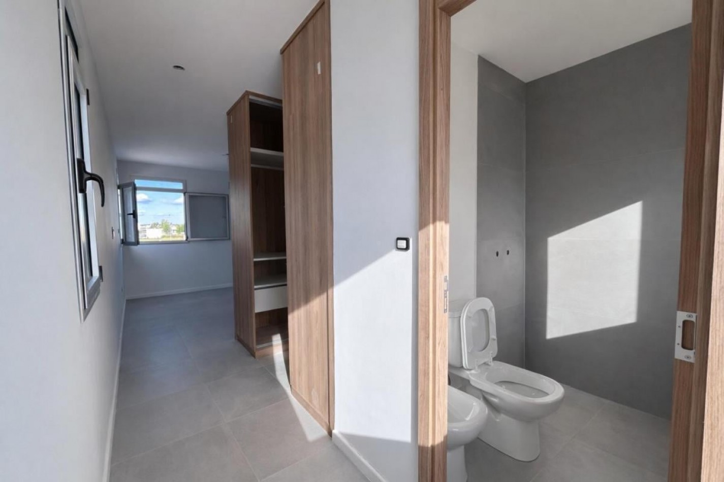 Las terminaciones son de muy buena calidad, con pisos de porcelanato, griferías FV, aberturas DVH, calefacción mediante radiadores, y pre-instalación de aire acondicionado. La cocina posee muebles completos, mesadas, alacenas, horno y anafe.