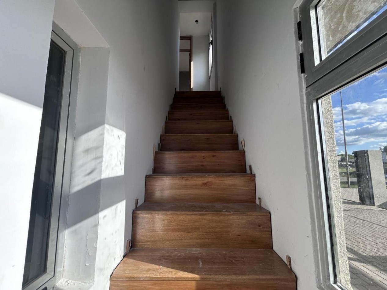 En la planta baja, se distribuyen un living comedor amplio, cocina semi-integrada, un toilete y una galería con parrillero, además cochera para guardar dos vehículos. En planta alta se encuentran los tres dormitorios, equipados con placares con interiores, y dos baños completos.
