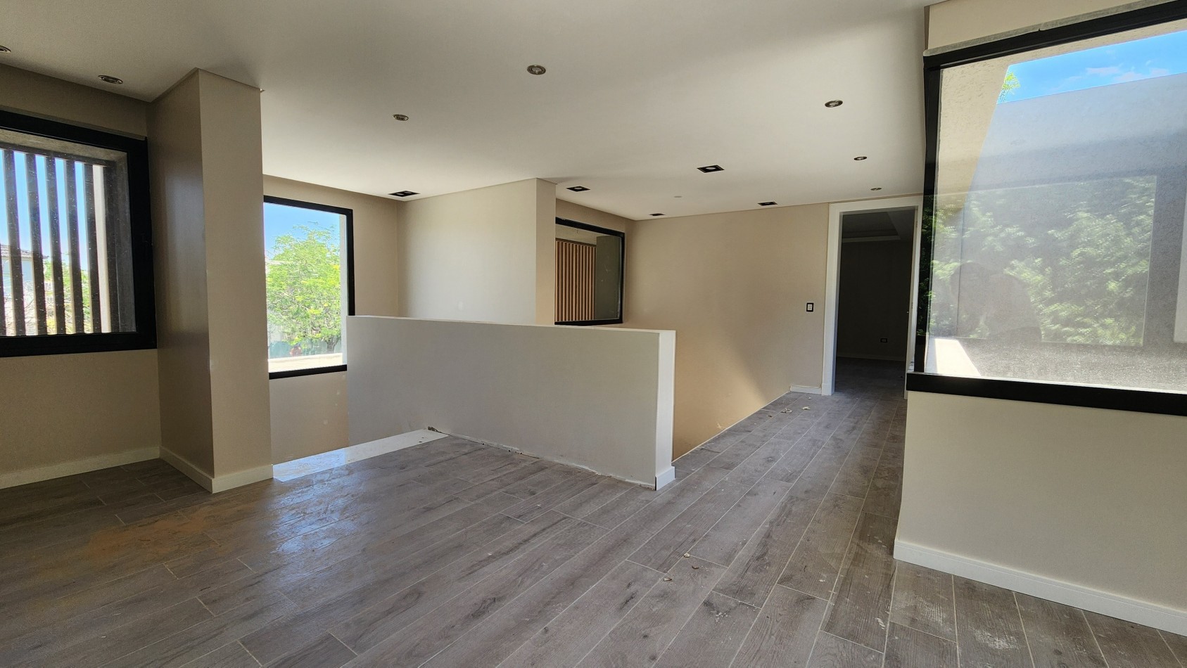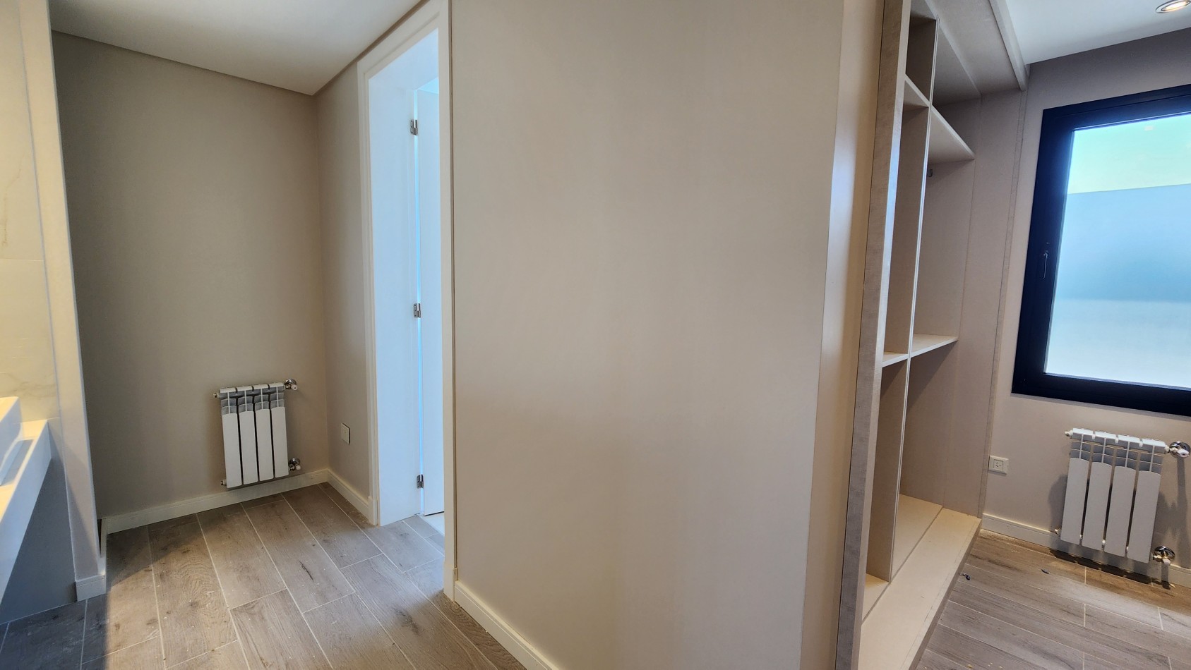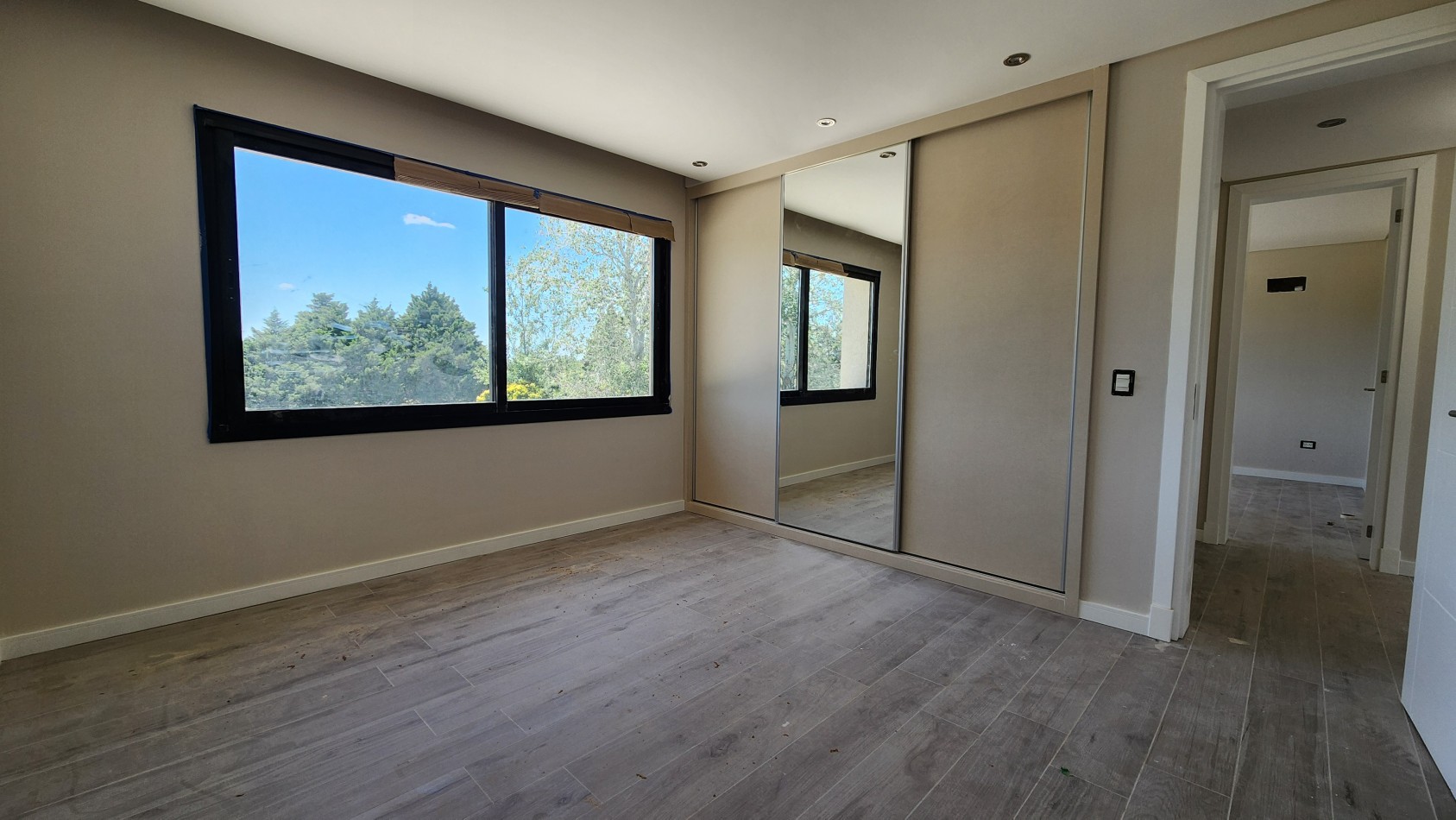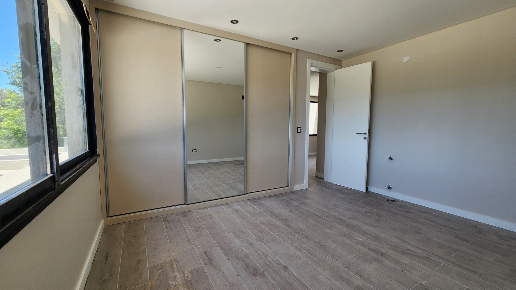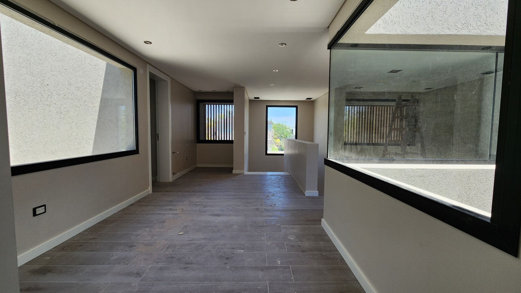 Subiendo la escalera, se encuentra un amplio distribuidor con espacio de escritorio, ideal para trabajar o estudiar. La planta alta cuenta con tres dormitorios, incluyendo un dormitorio principal con vestidor, antebaño y baño, todo con materiales de alta calidad y terminación premium. Los dormitorios secundarios también tienen placares y terminación de calidad premium. Un baño para las habitaciones secundarias, ofrecen comodidad y practicidad.