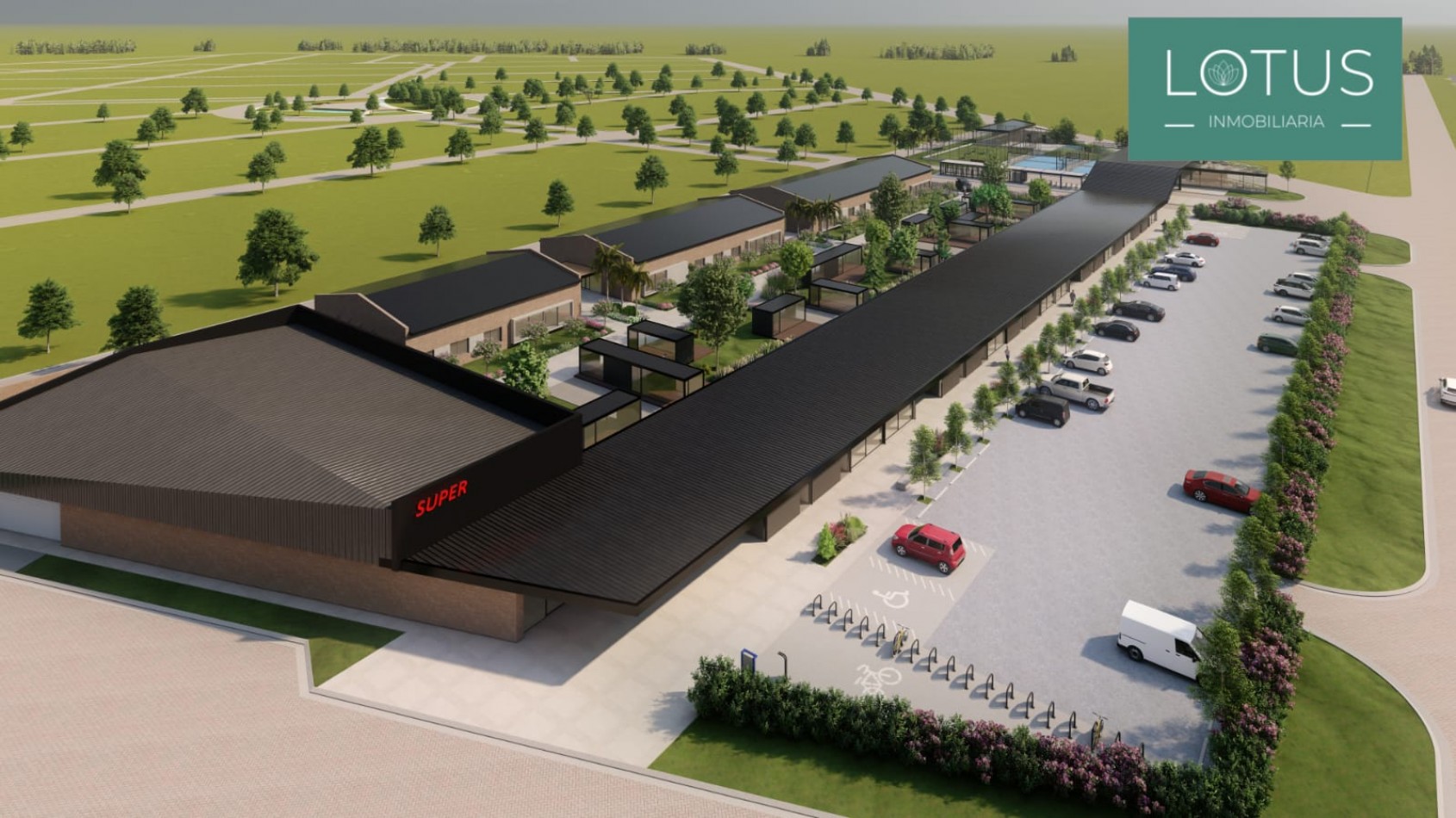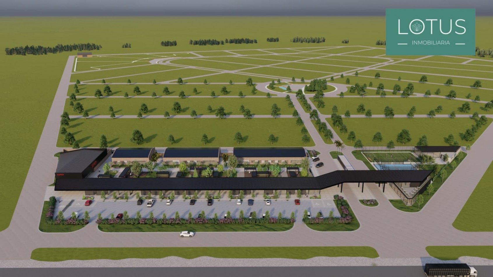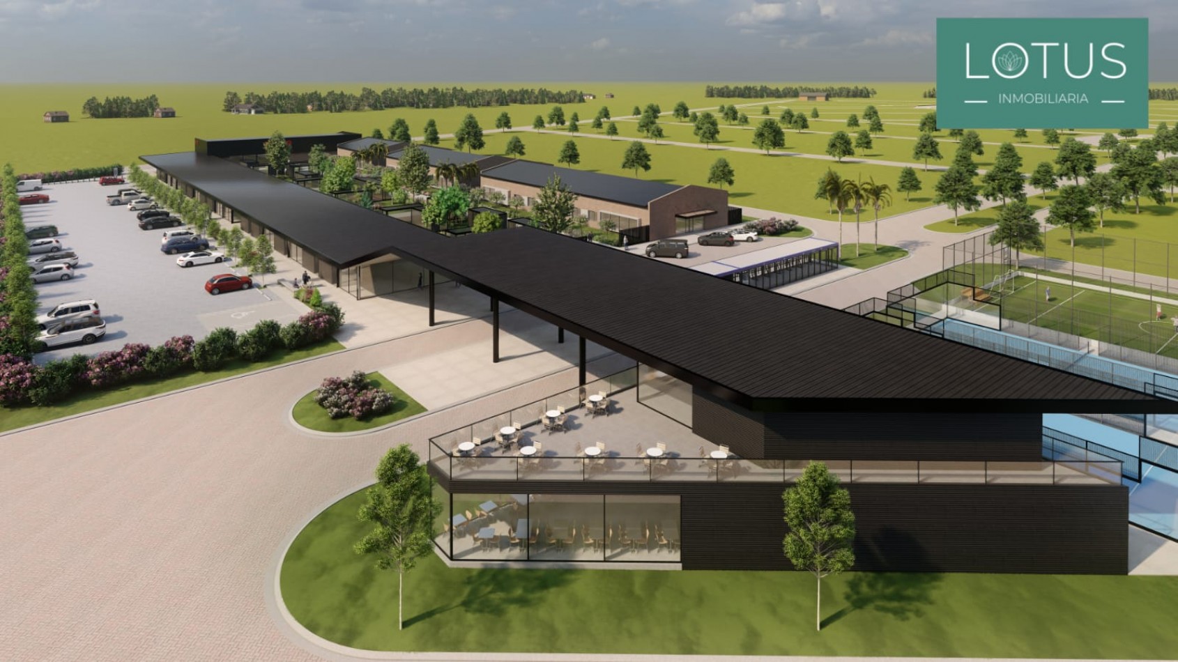 - Desarrollo de Área Deportiva: 2 canchas de paddle, 1 cancha de tenis, 1 cancha de fútbol 7.