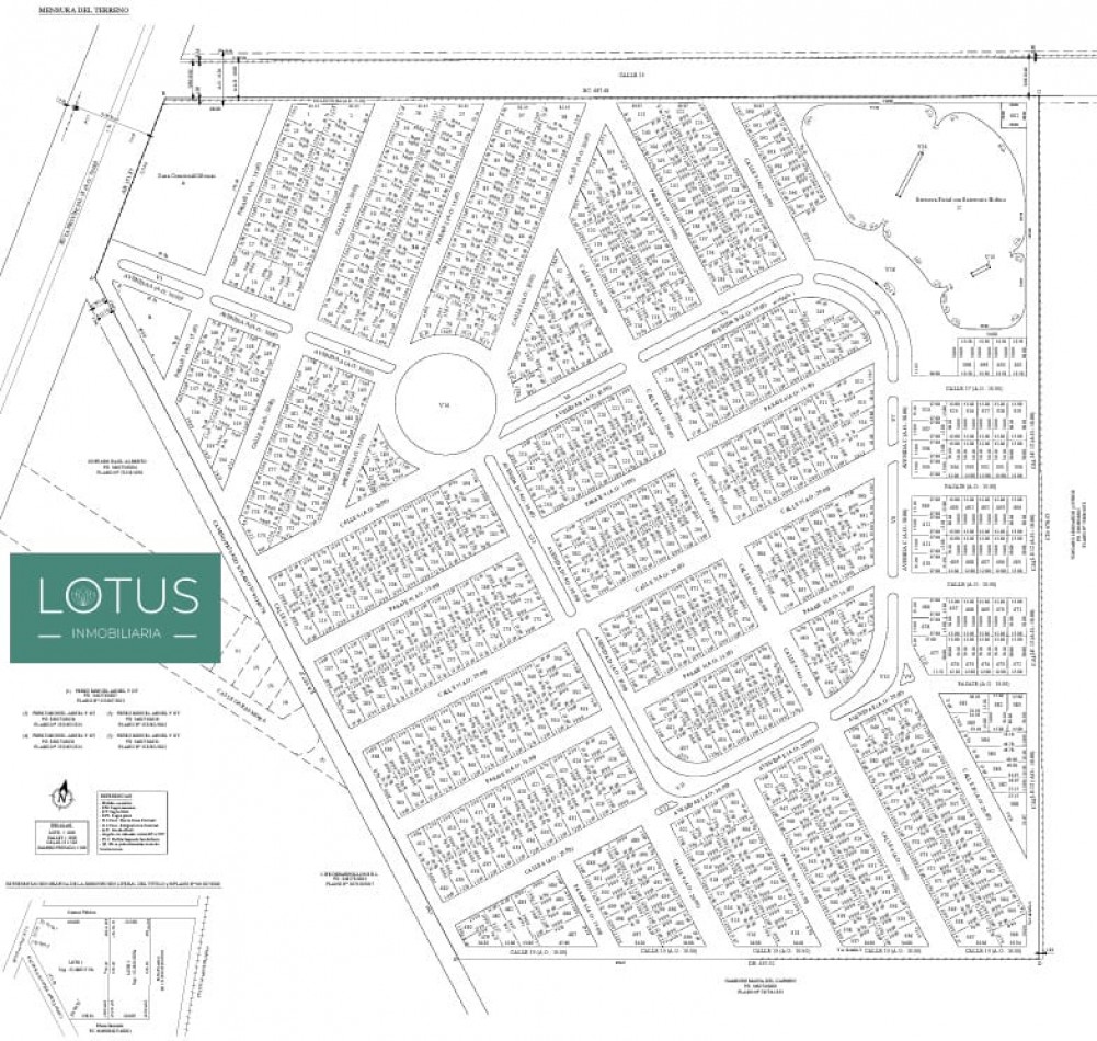 El proyecto cuenta aproximadamente con 600 lotes, cuya medida promedio ronda en los 360 m2, con un frente mínimo por lote de 12 metros, incorporando: