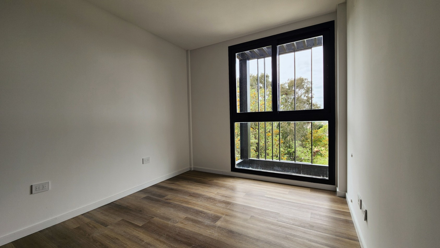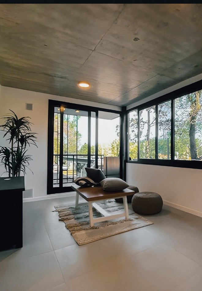 Terminaciones de calidad con pisos de porcelanato en estar, comedor y baños, en dormitorios pisos de ingeniaría y sócalos de polietileno blanco.