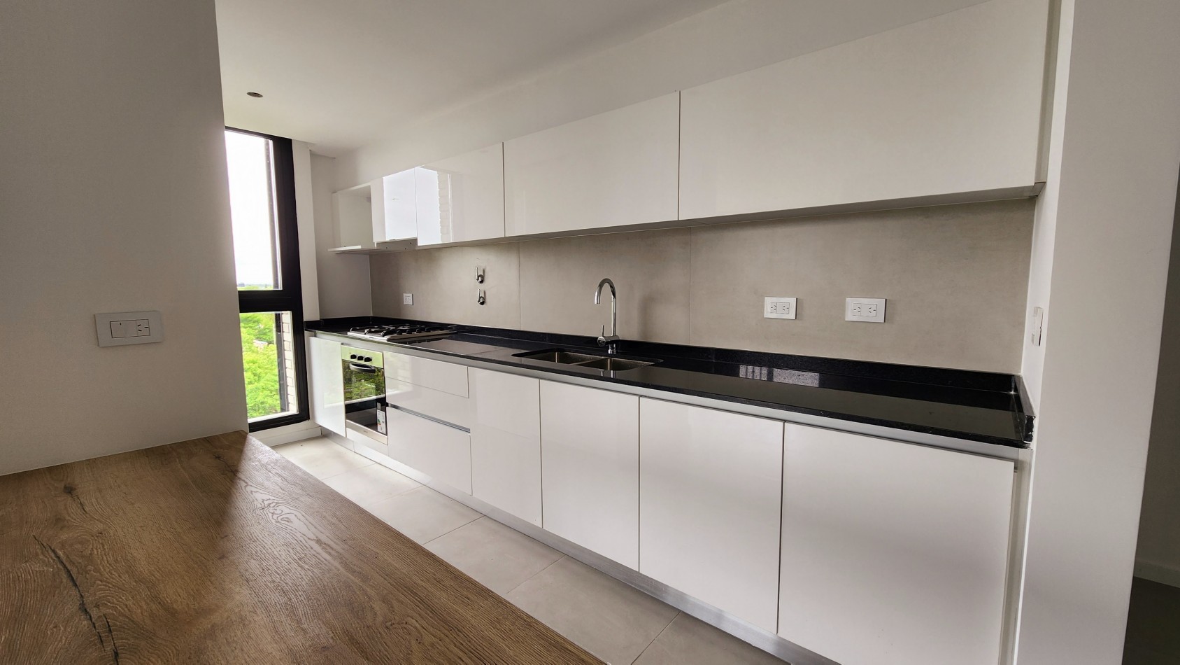 Muebles de cocina completos con bajo mesada y alacena de melamina color blanco, mesada de granito con bacha de acero inoxidable Johnson y grifería mono comando FV o similar, anafe a gas, horno, espacio técnico para heladera y caldera. Los dormitorios cuentan con placares con puertas de piso a techo e interiores diseñados.