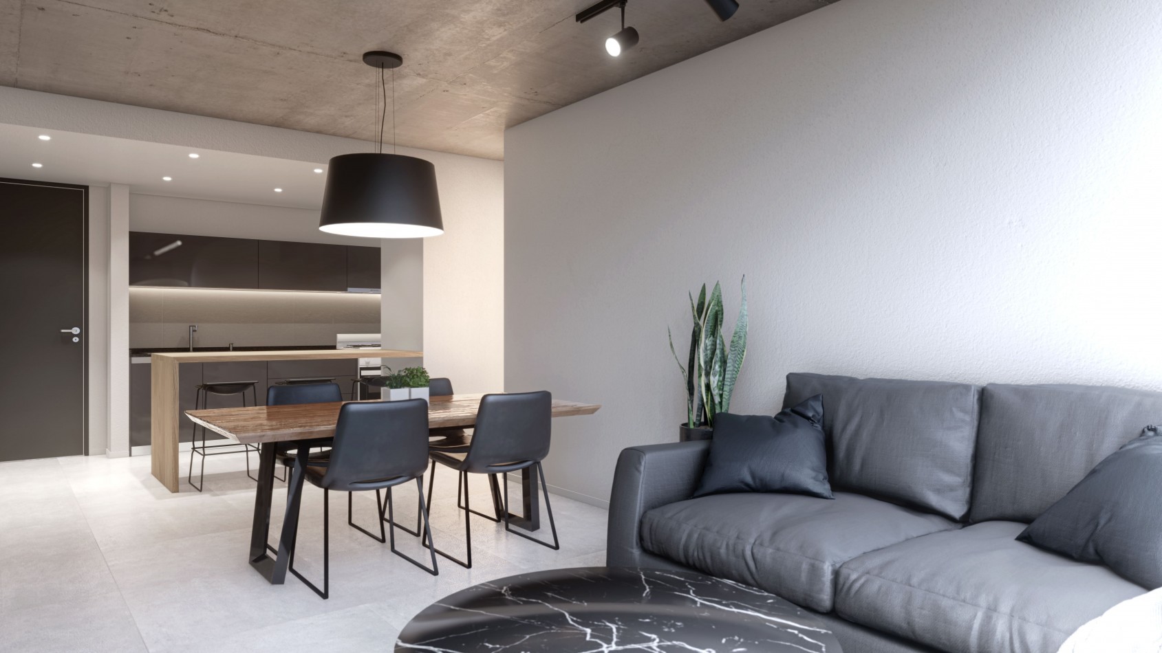 Compuesto por seis edificios de 6 plantas de departamentos de 1, 2 y 3 dormitorios con superficies de 54m², 76m² y 108m² respectivamente. Las unidades están equipadas con pisos de porcelanato en estar, comedor y baños, en dormitorios pisos de ingeniaría y sócalos de polietileno blanco. Terminaciones de cielo raso en dormitorios y losa vista de hormigón en los demás ambientes.