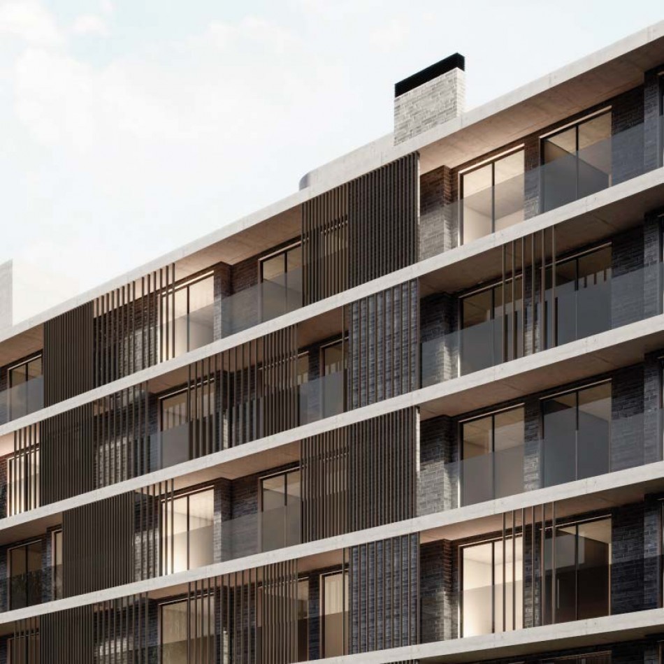 Compuesto por seis edificios de 6 plantas de departamentos de 1, 2 y 3 dormitorios con superficies de 54m², 76m² y 108m² respectivamente. Las unidades están equipadas con pisos de porcelanato en estar, comedor y baños, en dormitorios pisos de ingeniaría y sócalos de polietileno blanco. Terminaciones de cielo raso en dormitorios y losa vista de hormigón en los demás ambientes.