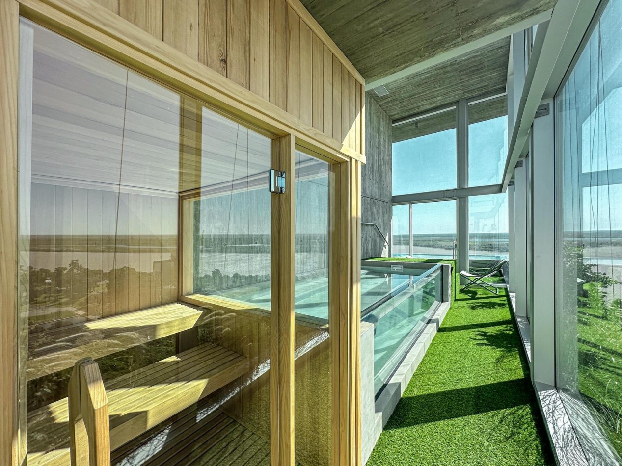 Calidades premium con una estructura de hormigón visto y maceteros verdes más riesgo artificial, aberturas de alta prestación en aluminio con DVH, pisos de madera de ingeniería en combinación con porcelanato para espacios húmedos, agua caliente central y climatización por aire con equipos VRV más losa radiante eléctrica en los baños, mucho espacio de guardado con placares terminados con interiores colocados, cocinas de diseño íntimo, mesadas de silestone, horno y anafes eléctricos diferenciados, bacha de acero inoxidable y mobiliario completo de piso a techo con bajo mesada más alacenas. Baños con loza sanitaria y griferías de primeras marcas, bañera o duchador, espejo colocado.