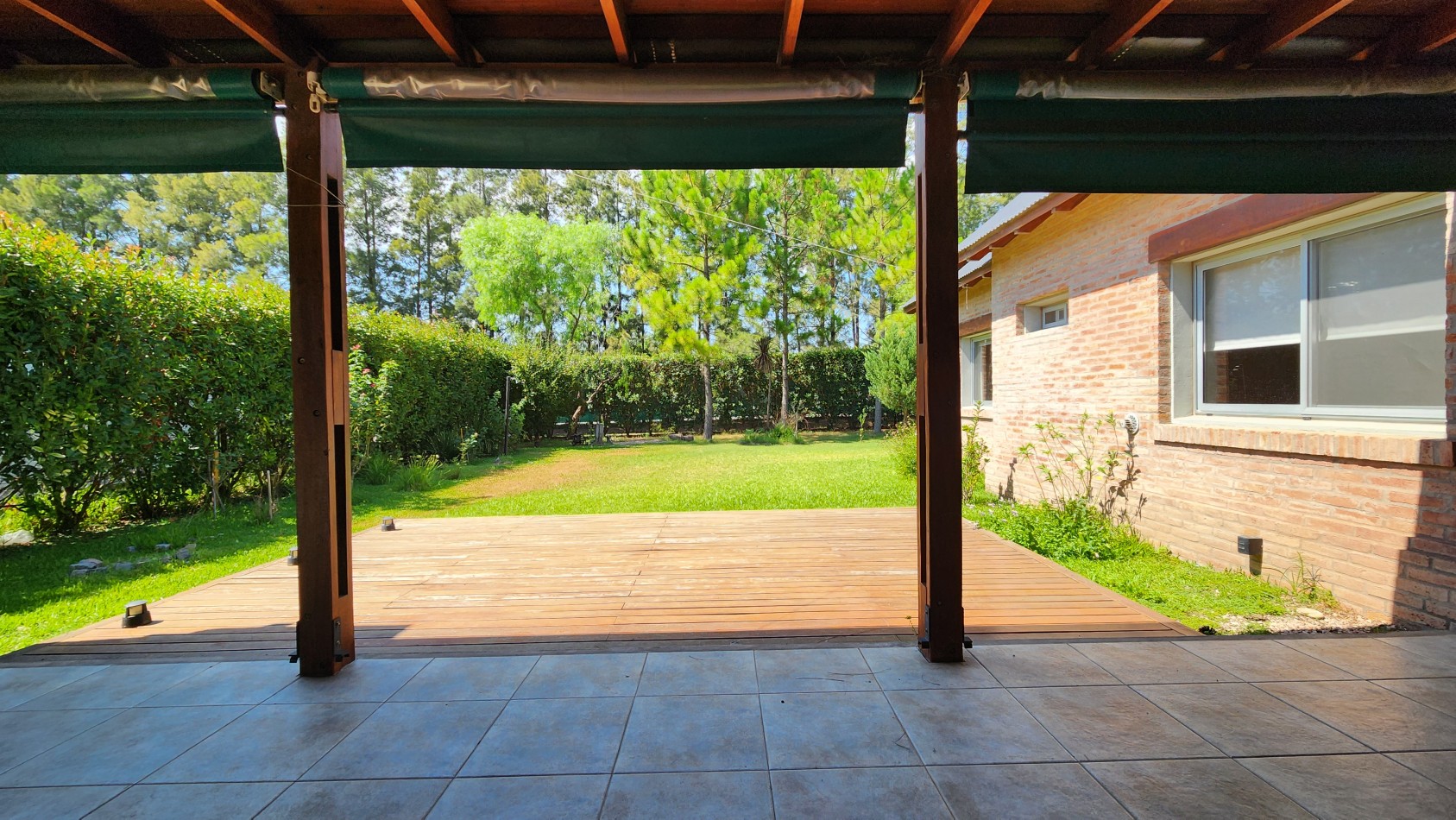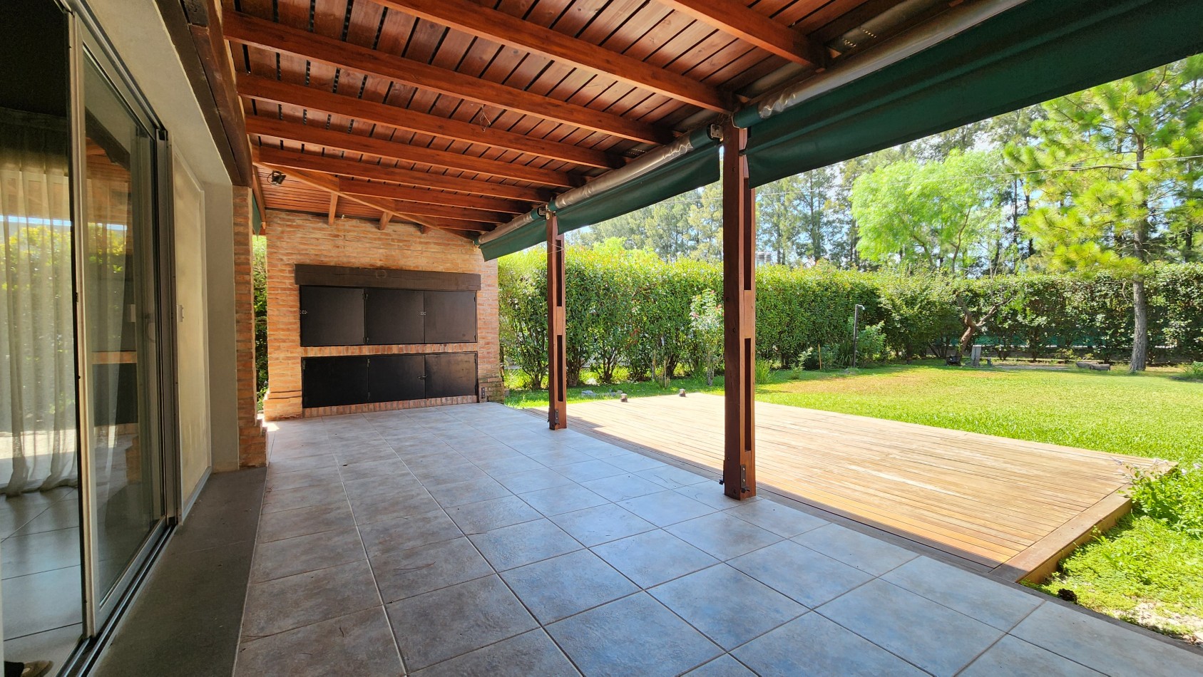 En el exterior, se disfruta de una galería con parrillero, jardín totalmente desarrollado con forestación madura, que aporta privacidad y un entorno verde único. Completa el conjunto una cochera semicubierta para dos vehículos.