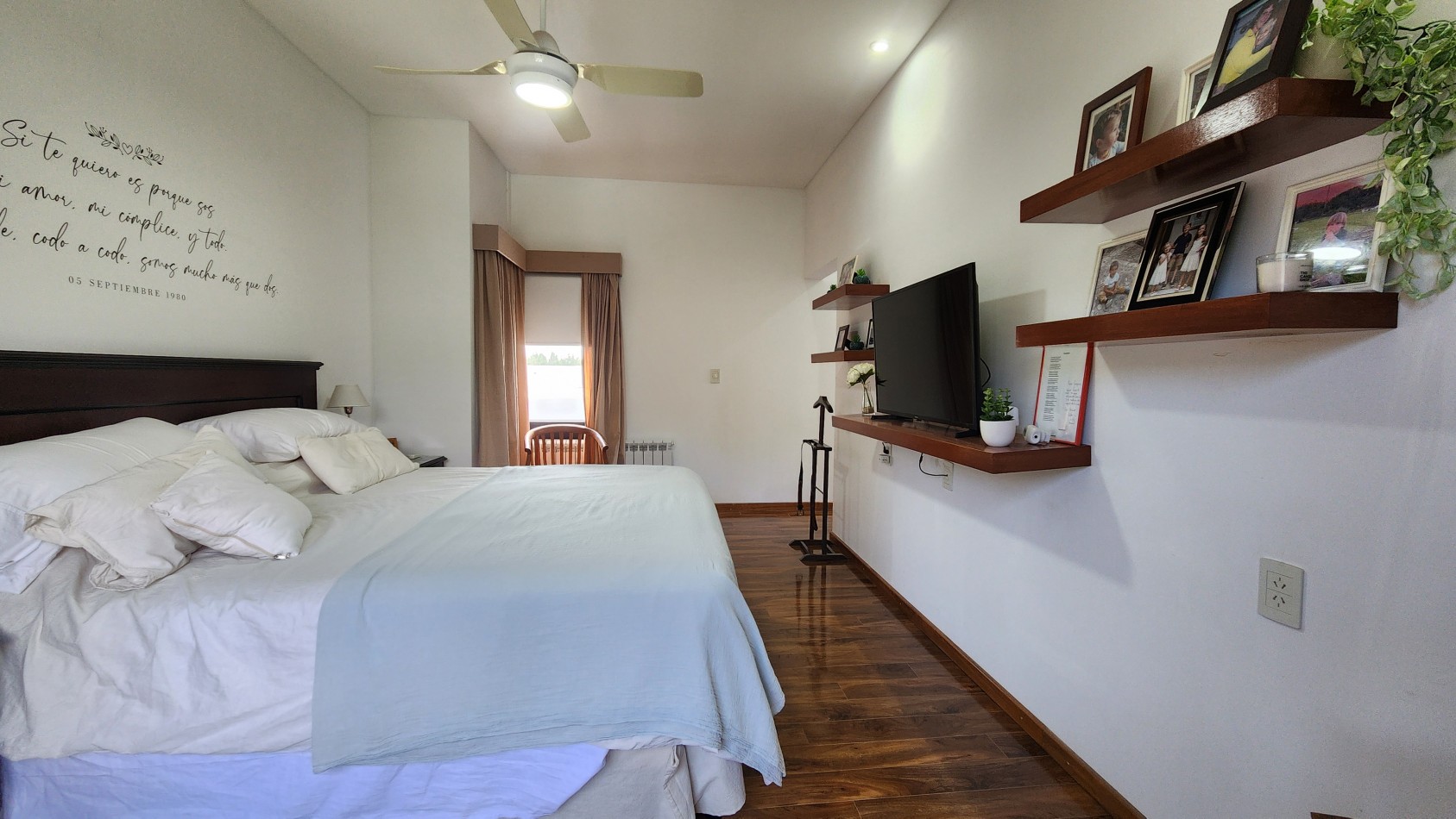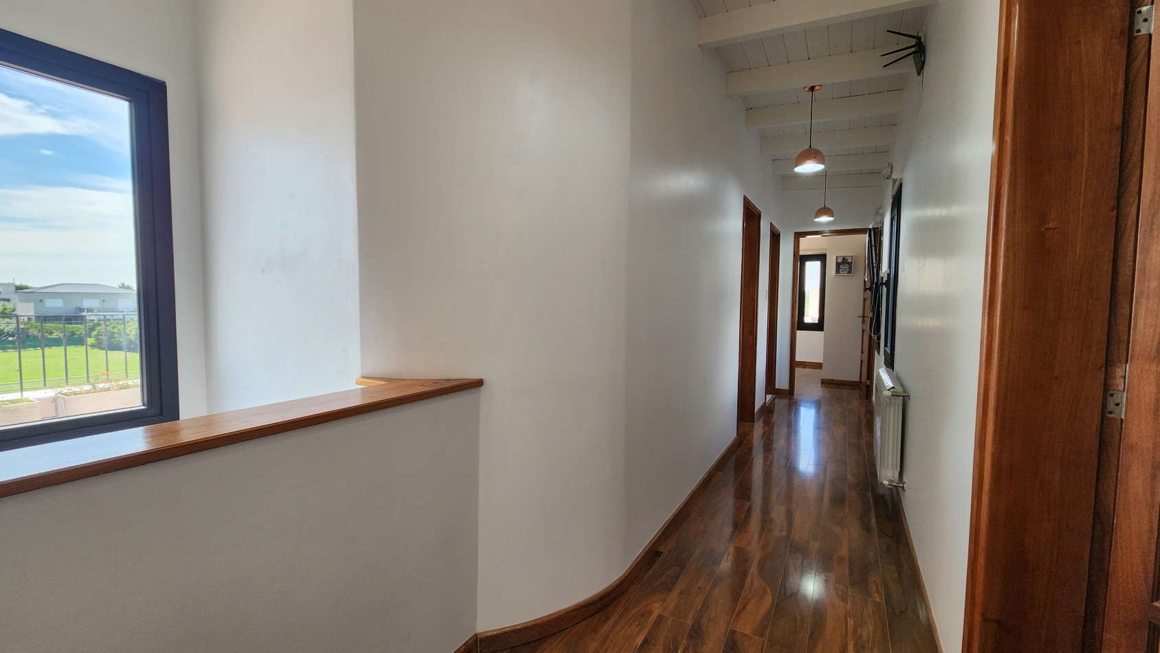 En el área intima, una escalera nos comunica con la planta alta donde nos encontramos con 3 dormitorios, dos asistidos por un baño completo con ante baño y un dormitorio principal en suite con vestidor.