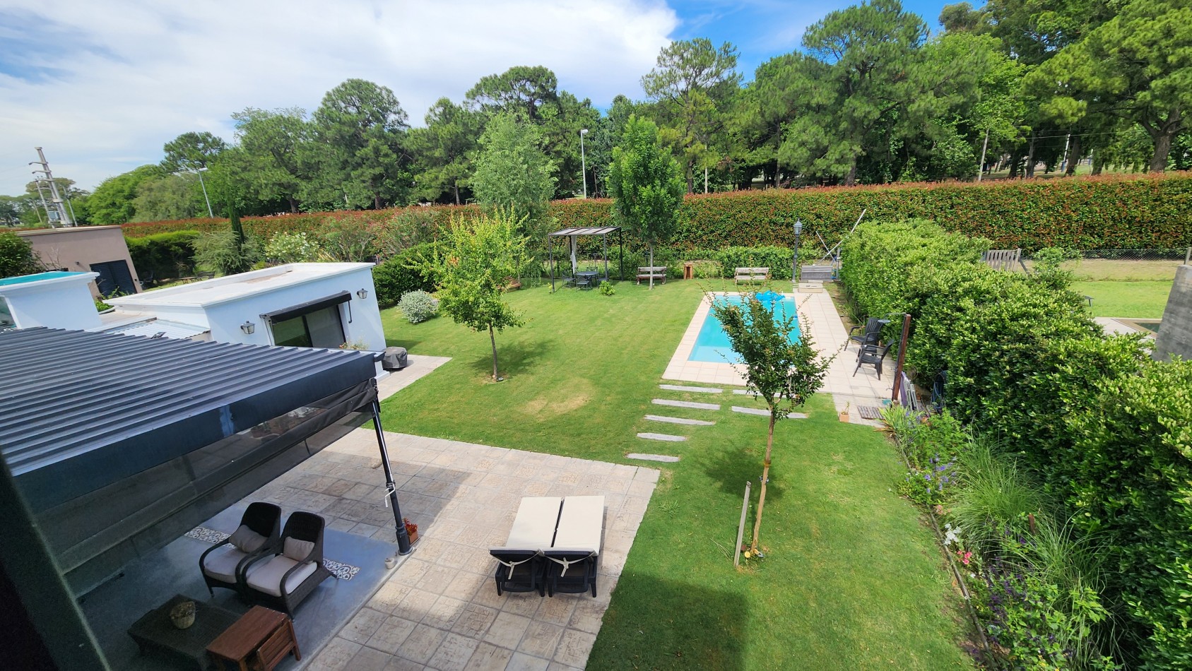 Afuera un amplio jardín con frondosa y desarrollada vegetación rodean la pileta.