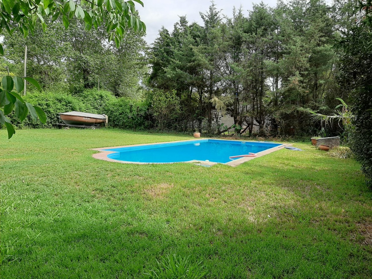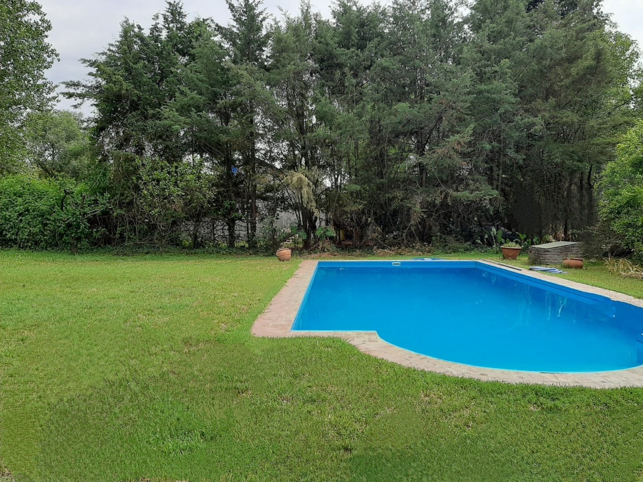 El terreno está compuesto por dos lotes unidos, con un frente de 24 m² y un fondo de 30 m². Se encuentra parcialmente cercado, cuenta con un amplio espacio parquizado con una pileta construida de 10x5 metros, equipada con bomba filtro y en excelente estado de uso y conservación.