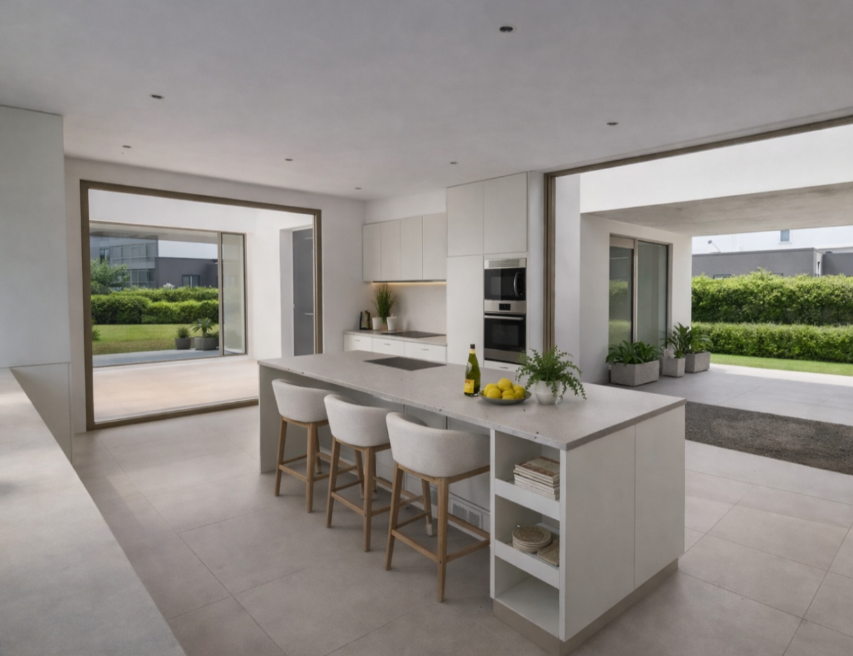 En Planta Baja podemos encontrar la Mastersuite, de fácil acceso y con gran privacidad, fluidez en su recorrido. En su interior nos encontramos con el vestidor de grandes dimensiones y un baño completo que cuenta con ante-baño, espacio de ducha generoso e iluminación y ventilación natural. En cuanto a la cocina, se encuentra hacia el frente de la casa. La misma cuenta con mobiliario completo, una isla con desayunador y extraccion, y es vinculada a un patio privado con vegetación e ingreso de luz norte. La cocina posee un ingreso independiente.