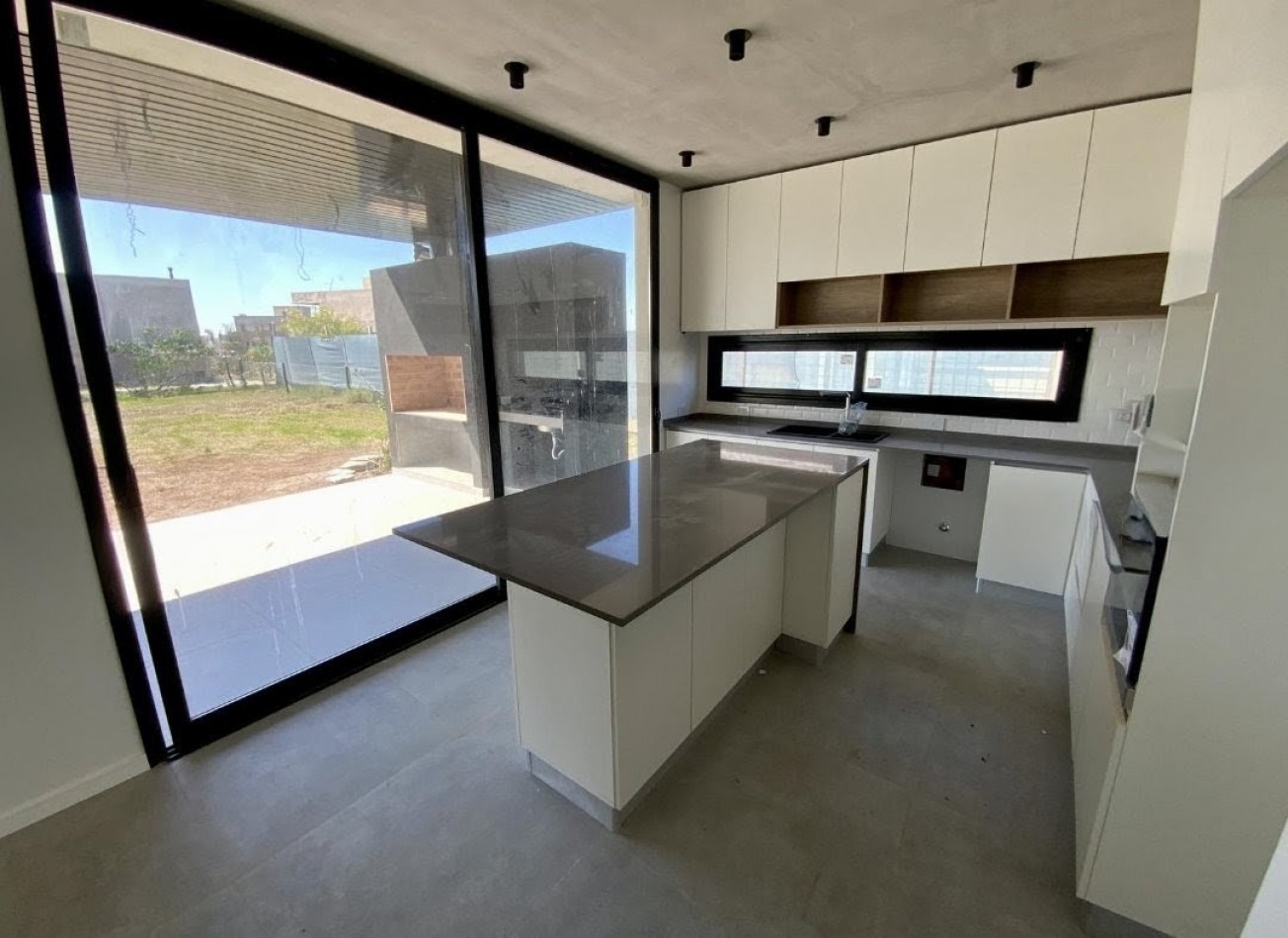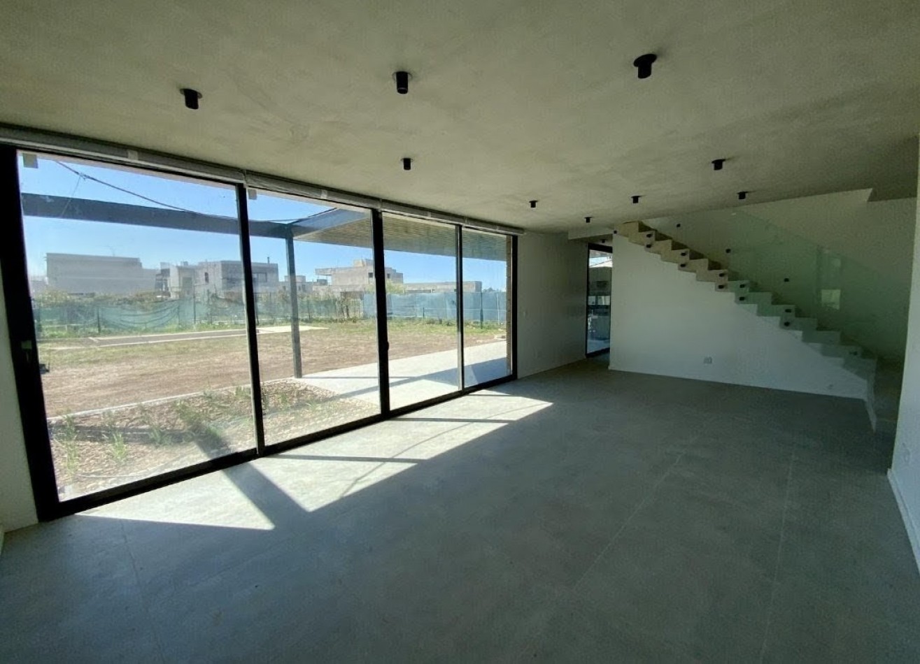 El living comedor de concepto abierto, se conecta mediante amplios ventanales con la galería semi-cubierta que da hacia el jardín de la vivienda; la misma cuenta con un gran parrillero.