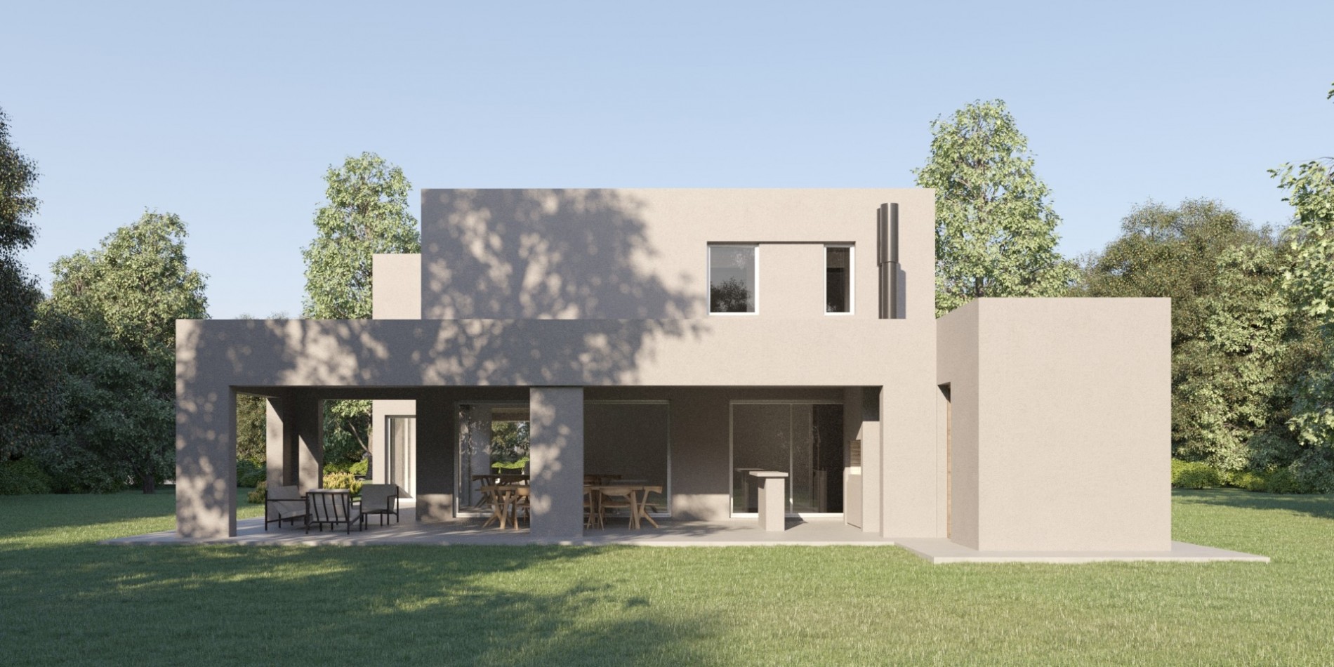 Desarrollada sobre un terreno de 800 m², la casa cuenta con una superficie total construida de 317 m², compuesta por 130 m² cubiertos en planta baja, 135 m² cubiertos en planta alta y 104 m² semicubiertos, logrando una excelente integración entre los espacios interiores y el jardín.