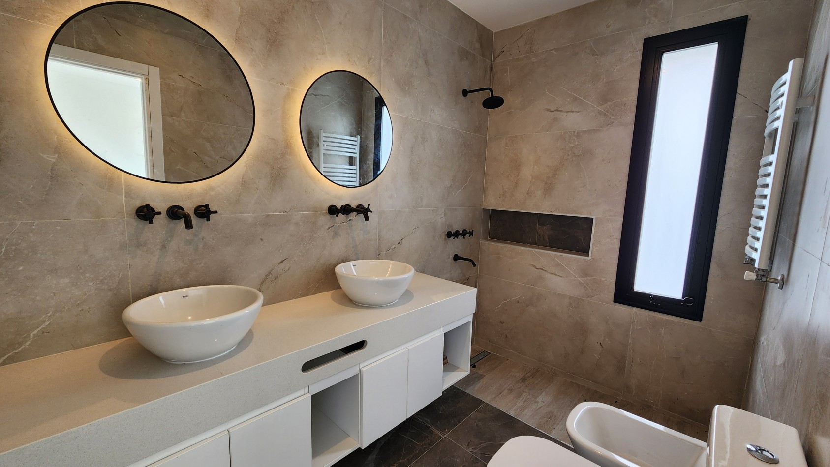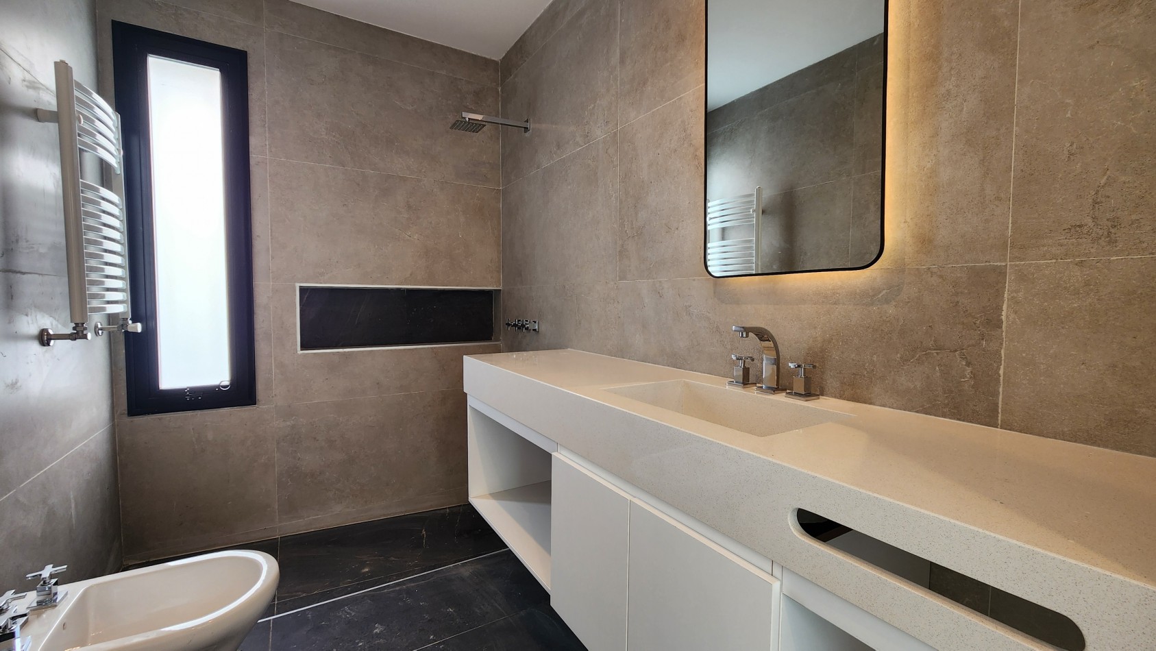 La calidad de los materiales es premium, aberturas de aluminio negro línea Modena y A30 New con DVH para mejorar la eficiencia energética y reducir el ruido exterior.