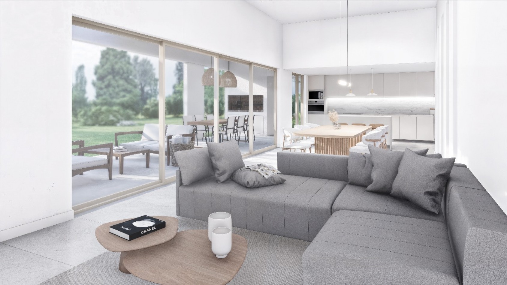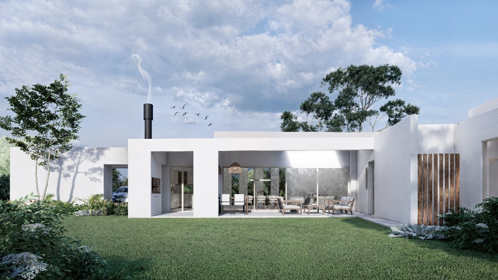 En el exclusivo entorno de Barrio Vida Club de Campo, se presenta esta moderna propiedad desarrollada en una sola planta, sobre un lote en esquina de 1.065 m², con orientación norte y oeste y un fondo este que asegura luminosidad y calidez natural durante todo el día.